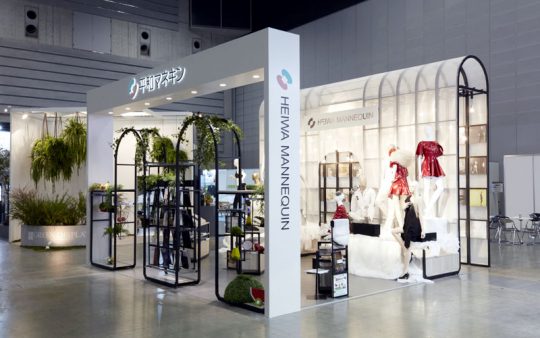 今回の展示ブースでは『光と香りのギャラリー』をテーマに、様々な汎用性を持つ、完成度の高いオリジナル什器、すべての年齢層、すべてのブランドに適応する演出力豊かなマネキンをご覧いただくことができました。